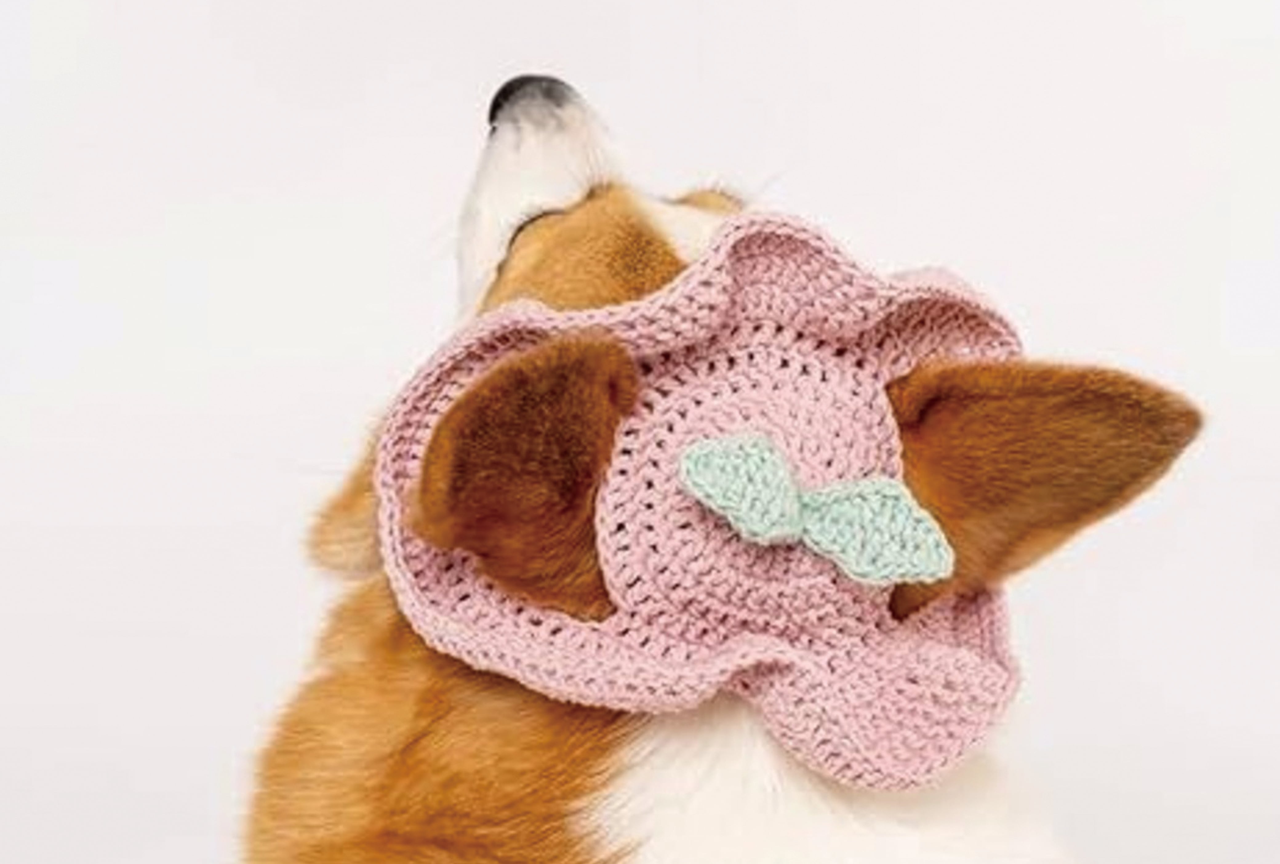 『軽くて、柔らかい手触りです』職人が台湾製コットン100%の糸を使用して、ひとつずつ手作業で編みました。コットン素材で蒸れずに、ワンちゃんの頭を強い日差しから守ります。 耳穴があるので簡単に被せることができます。